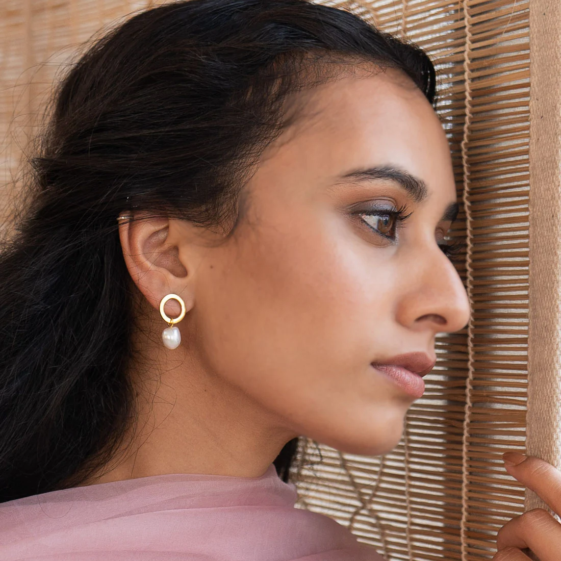 Hoop with 10-12mm pearl drop (since they are Fresh Water Pearls 1 to 2mm size difference will be seen in Pearls)