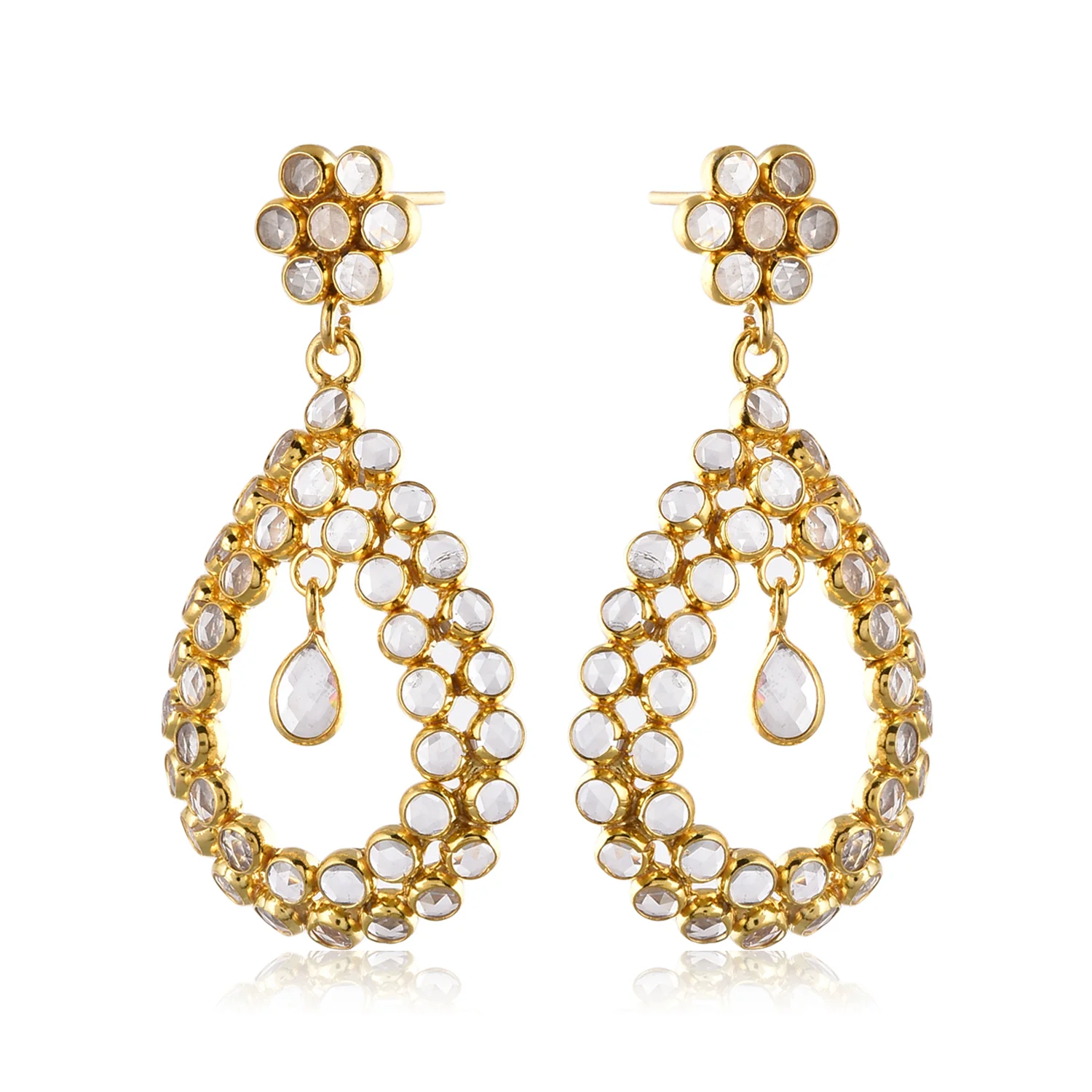 Classic Pear shaped Earring! These perfect dangle Earring have tiny glass Crystals encased in 92.5 hallmark Silver and are 22 Karat Gold-plated, bringing a sparkle to every dangle! Truly a standout piece, they combine a classic shape with unique detailing, creating a one-of-a-kind look.